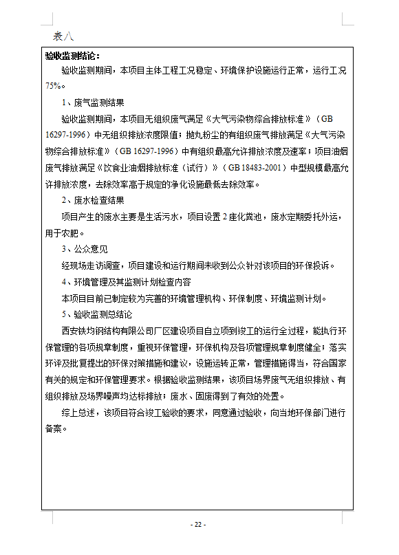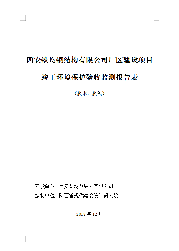 西安鐵均鋼構(gòu)廠區(qū)建設(shè)-驗(yàn)收監(jiān)測報(bào)告(廢水、廢氣)